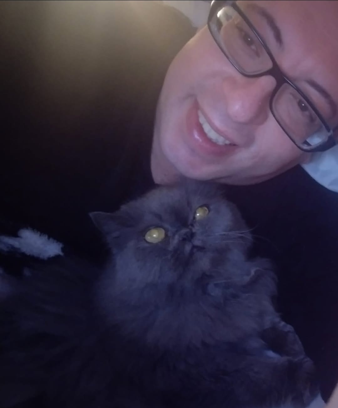 Com o olho esbranquiçado, lacrimejando ou batendo nas coisas?